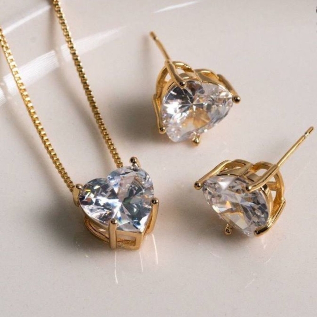 • Amor em cada detalhe: Conjunto Coração de Zircônia ✨