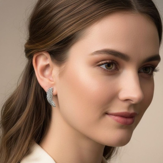 • Brinco em Prata Indiana em Forma de Folha