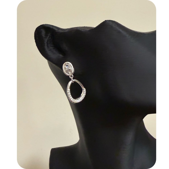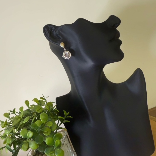 • Brinco de Zircônia de Prata com Aplique em Ouro
