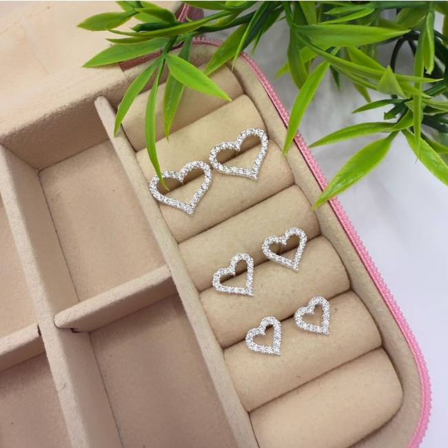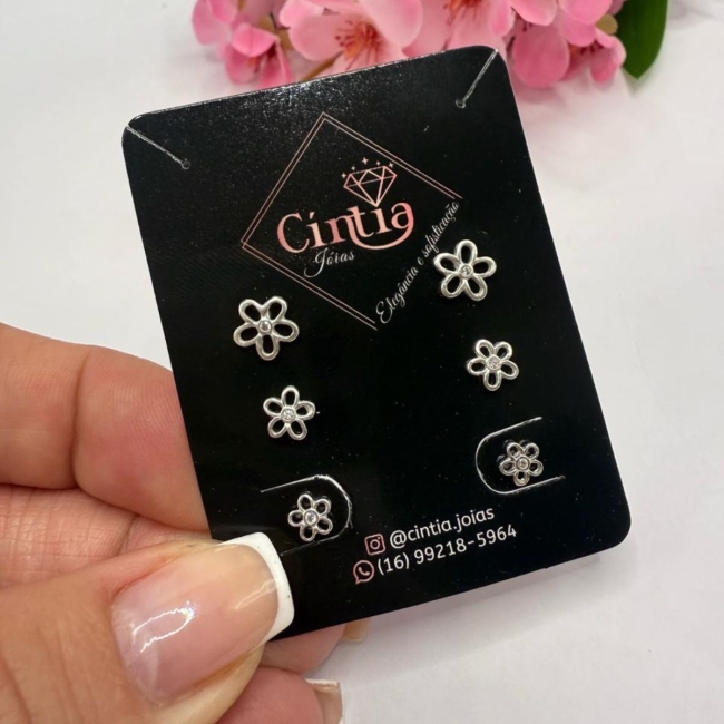 • Trio de Brincos Flor em Prata 925 com Zircônia: Delicadeza e Versatilidade