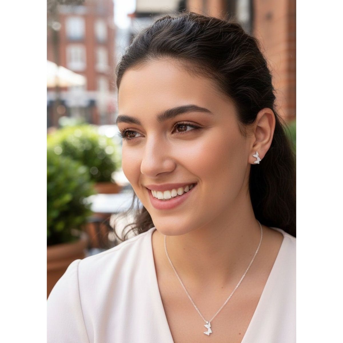 Você está aqui: Página inicial1 / Loja2 / Prata 9253 / Conjuntos4 / Conjunto em Prata 925 em forma de Borboletas Cravejadas