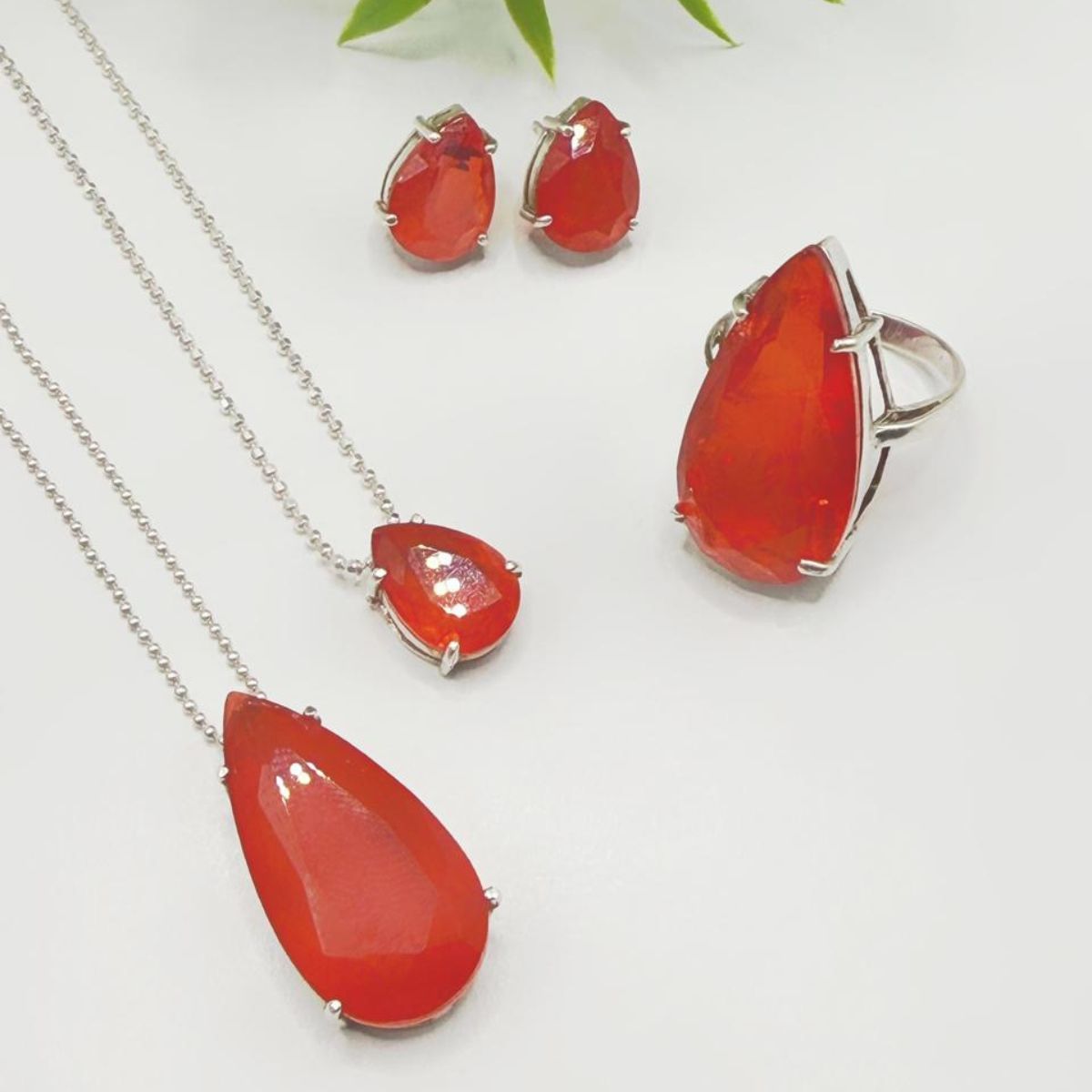 Com brincos deslumbrantes, correntes de 40 e 45cm com pingentes delicados e anéis em gota que capturam a luz como o pôr do sol de verão, esta joia é perfeita para quem não tem medo de se destacar.