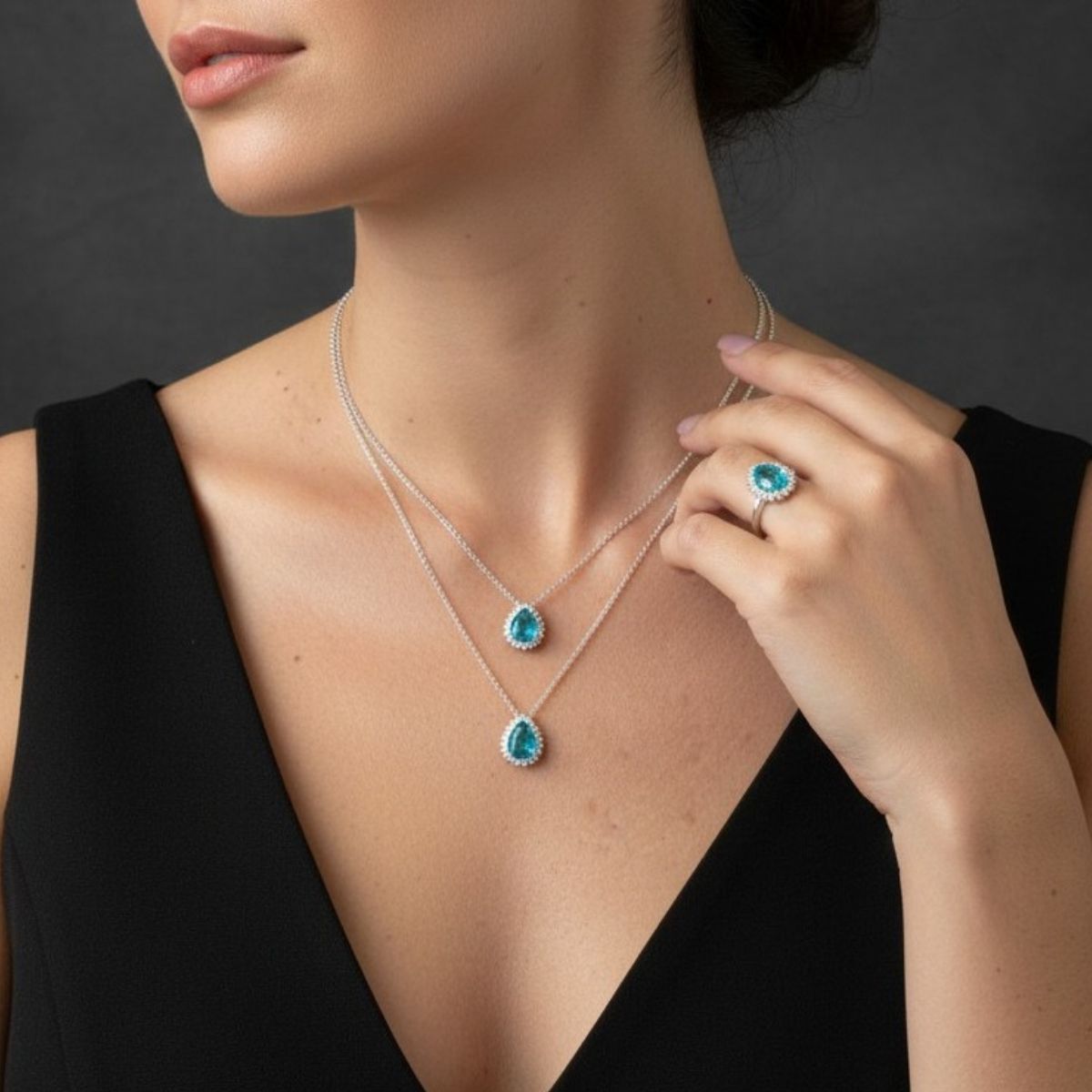 •Anel: Uma peça central que complementa o visual, garantindo que o brilho da Turquesa se estenda a cada detalhe.