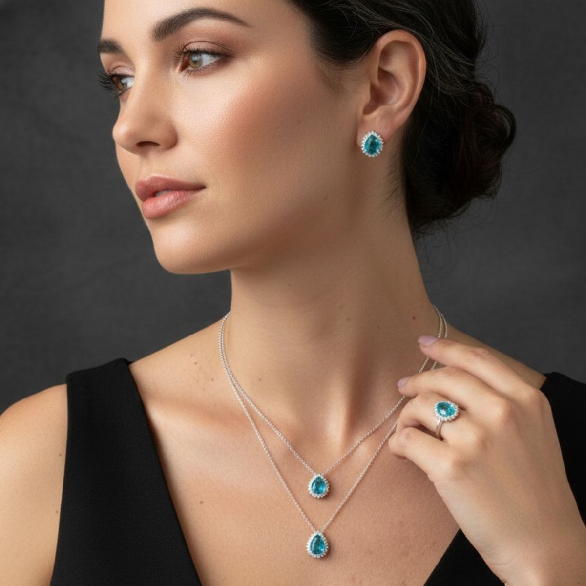 Conjunto Gota Turquesa e Branca: O Brilho Completo para Seu Look