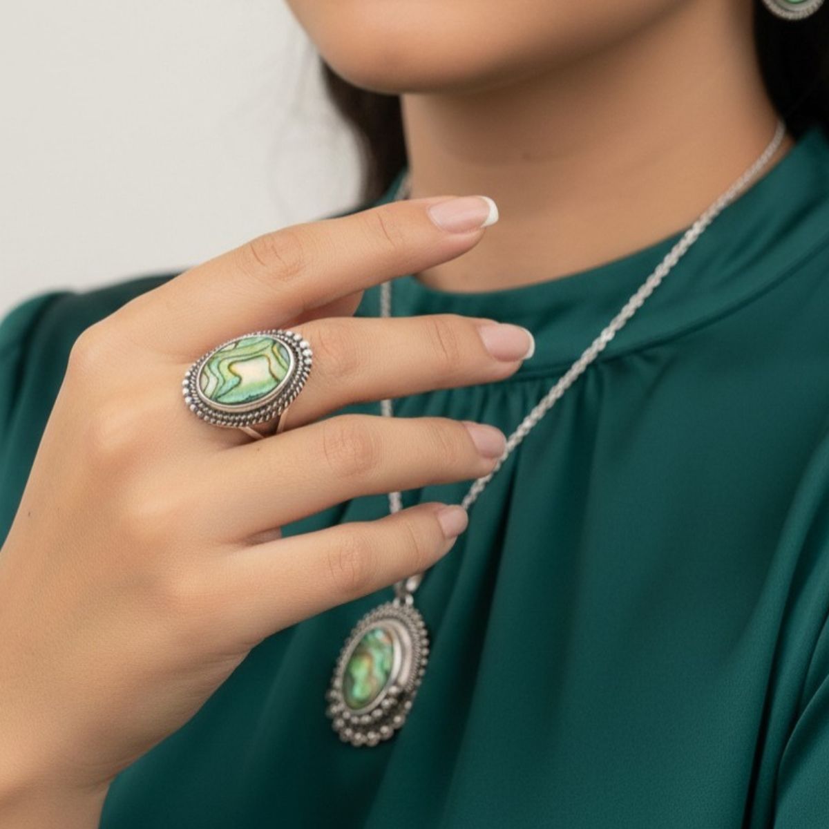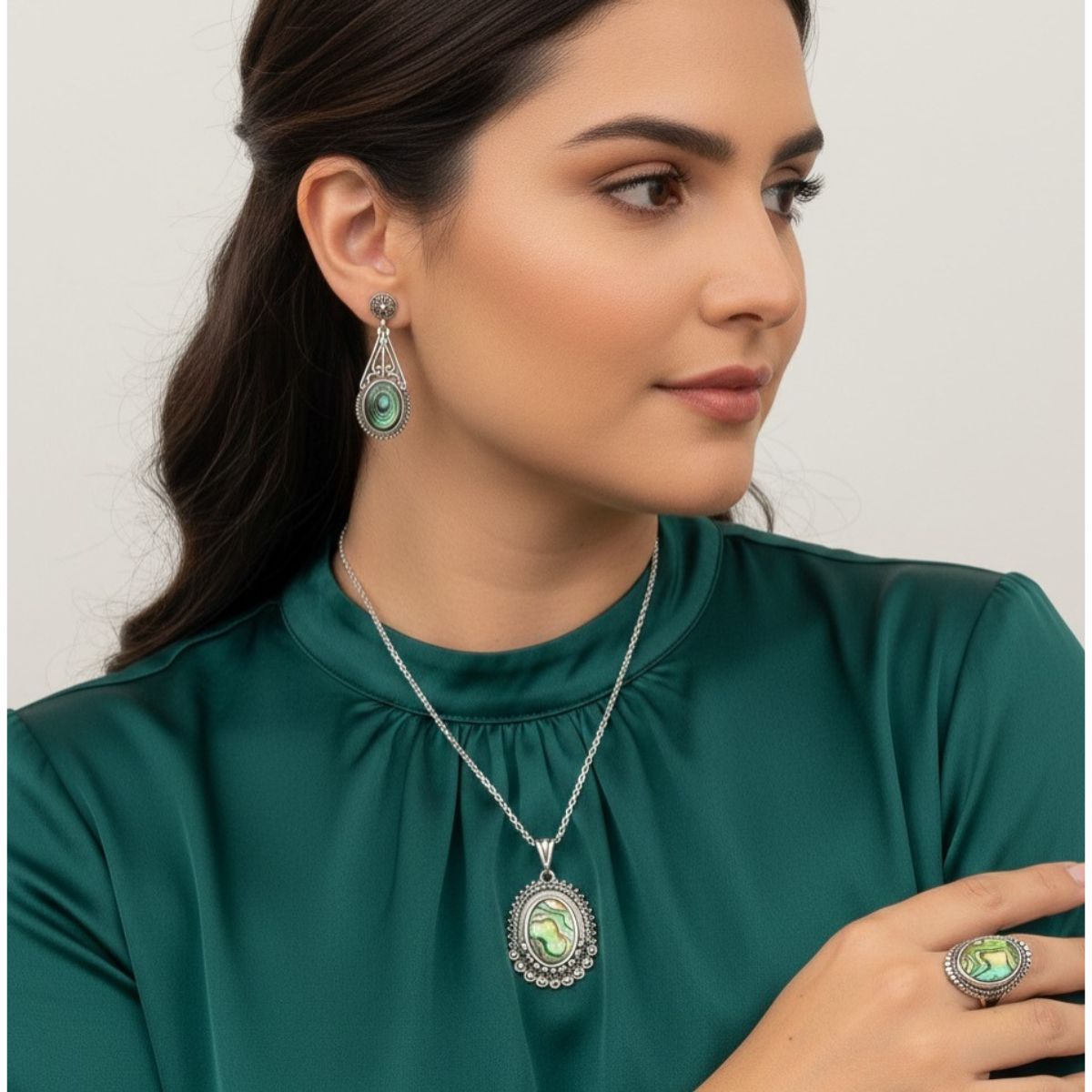 Conjunto em Prata Indiana Maximalista com Pedras Abalone