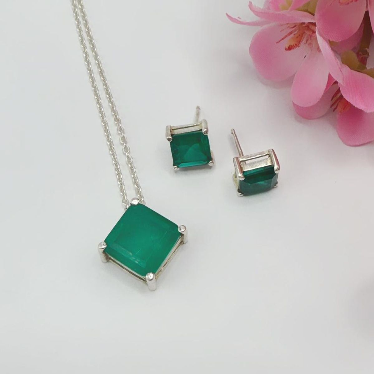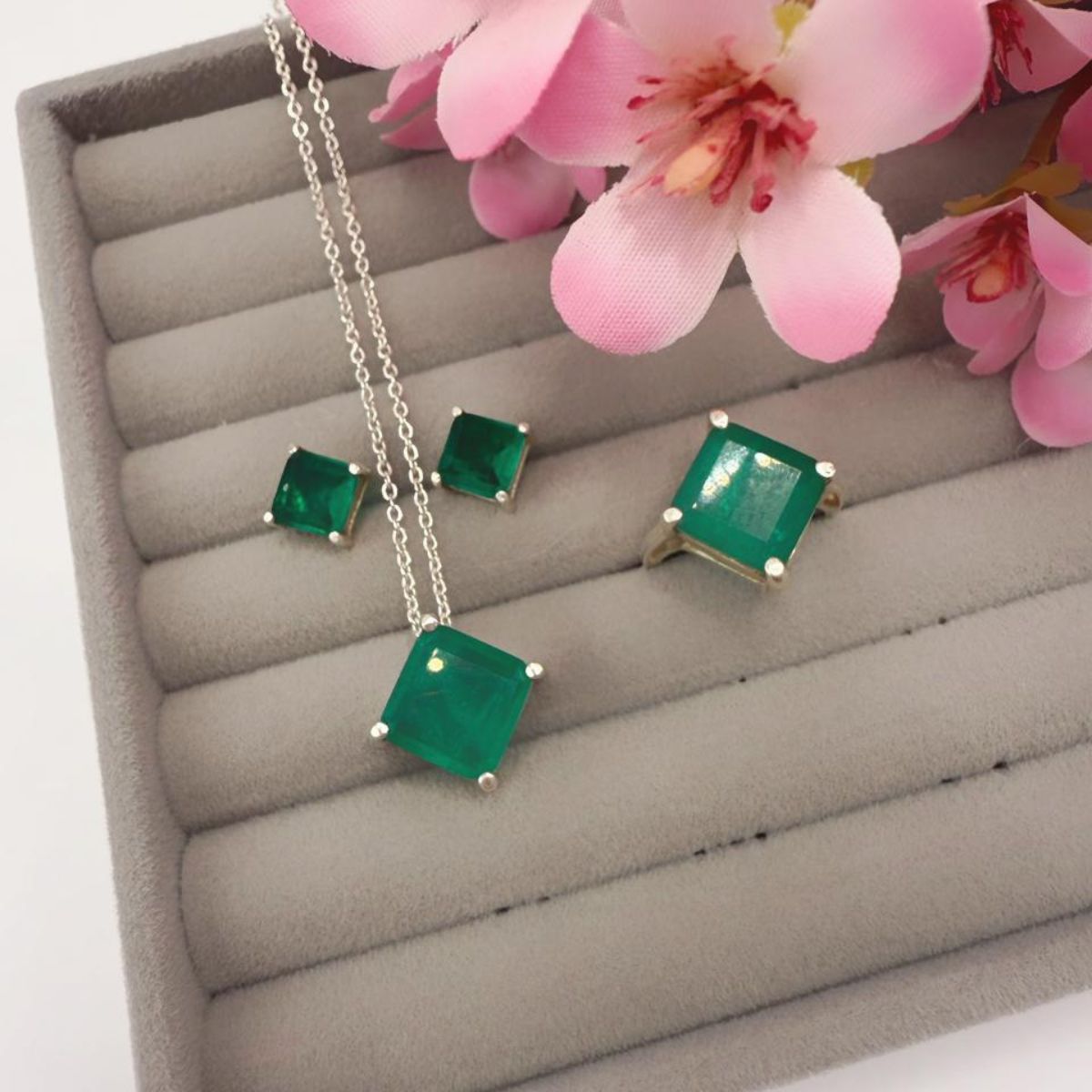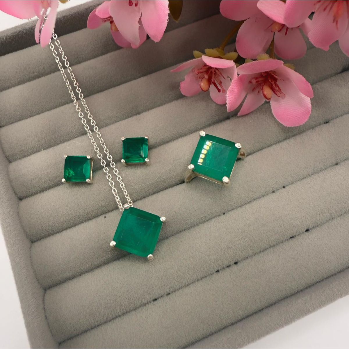 Descubra a elegância atemporal com o nosso Conjunto de Joias em Prata 925 com Pedras Esmeralda. Uma peça de luxo que combina a sofisticação da Prata de Lei com o brilho hipnotizante da Esmeralda.